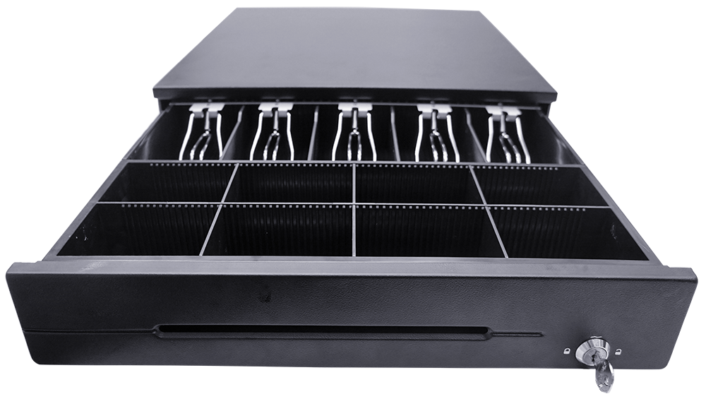 Денежный ящик обладает высококачественными шариковыми направляющими, сделанными из металла, а также запирающим механизмом и соленоидом повышенной надёжности.